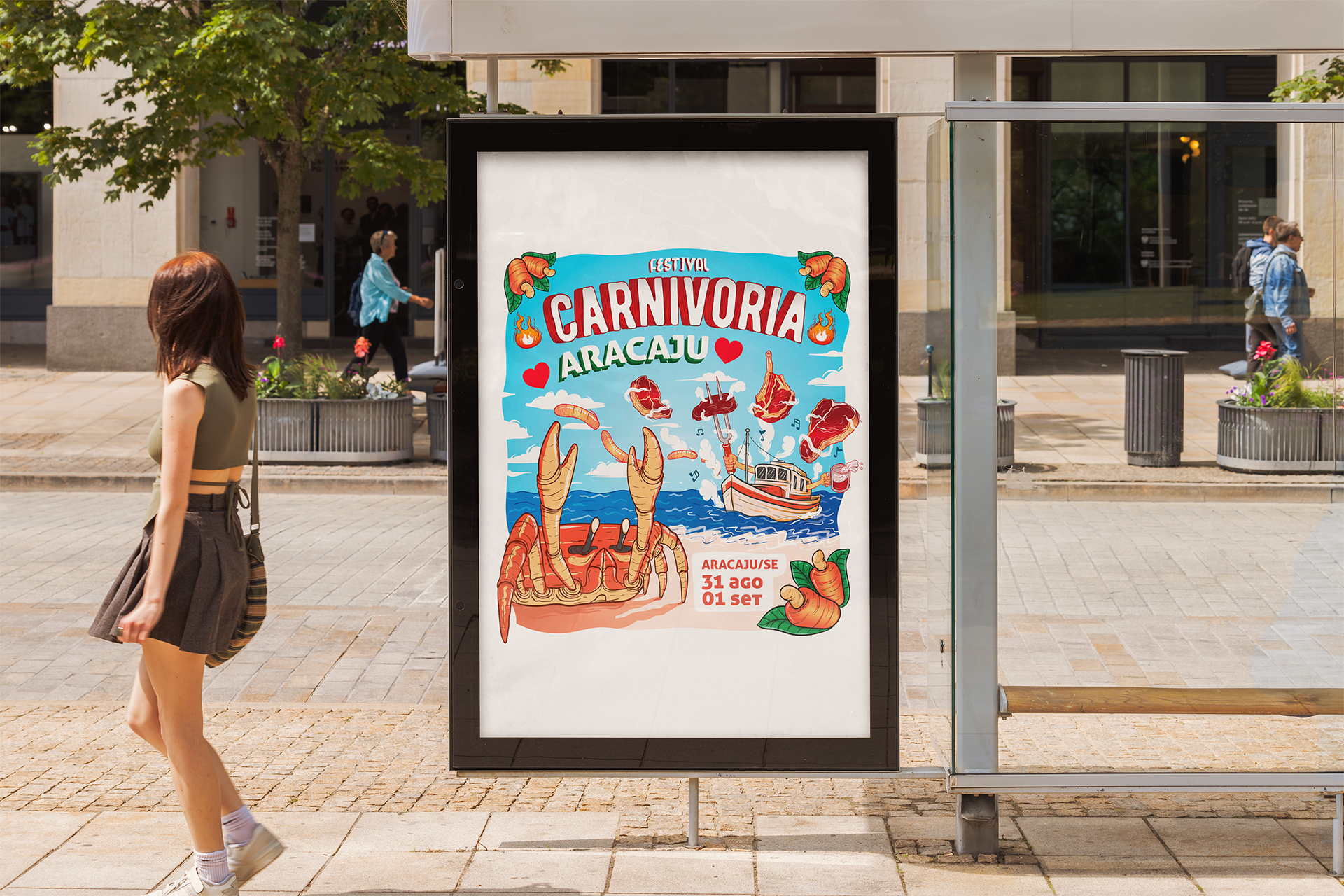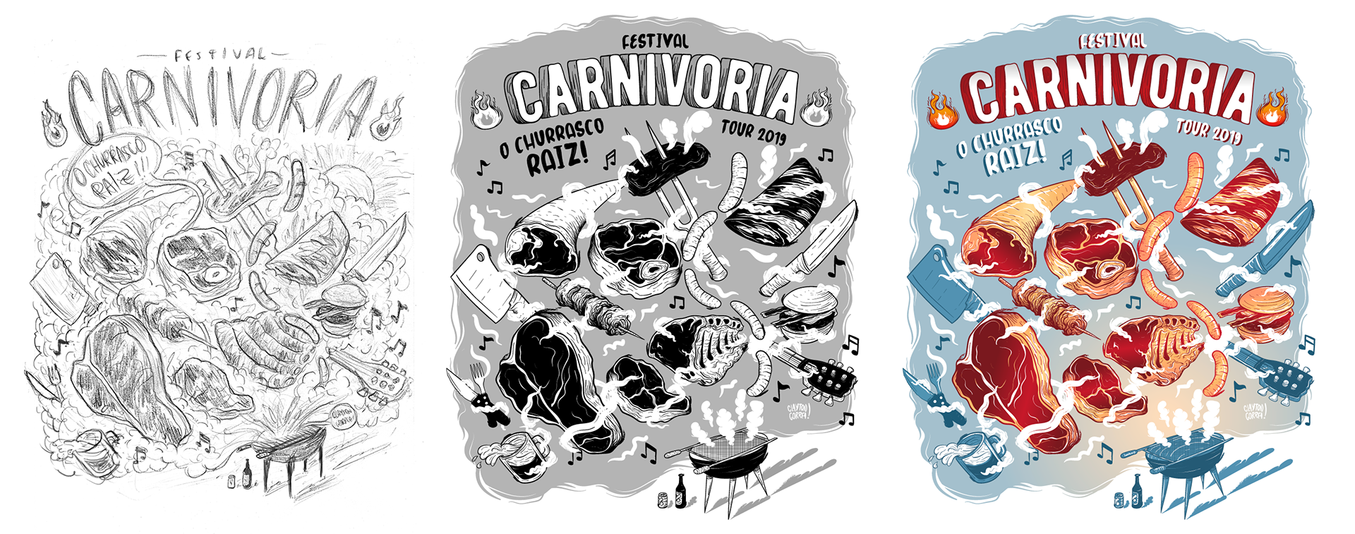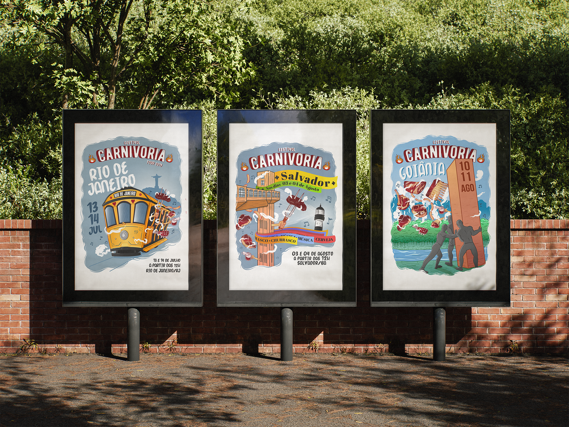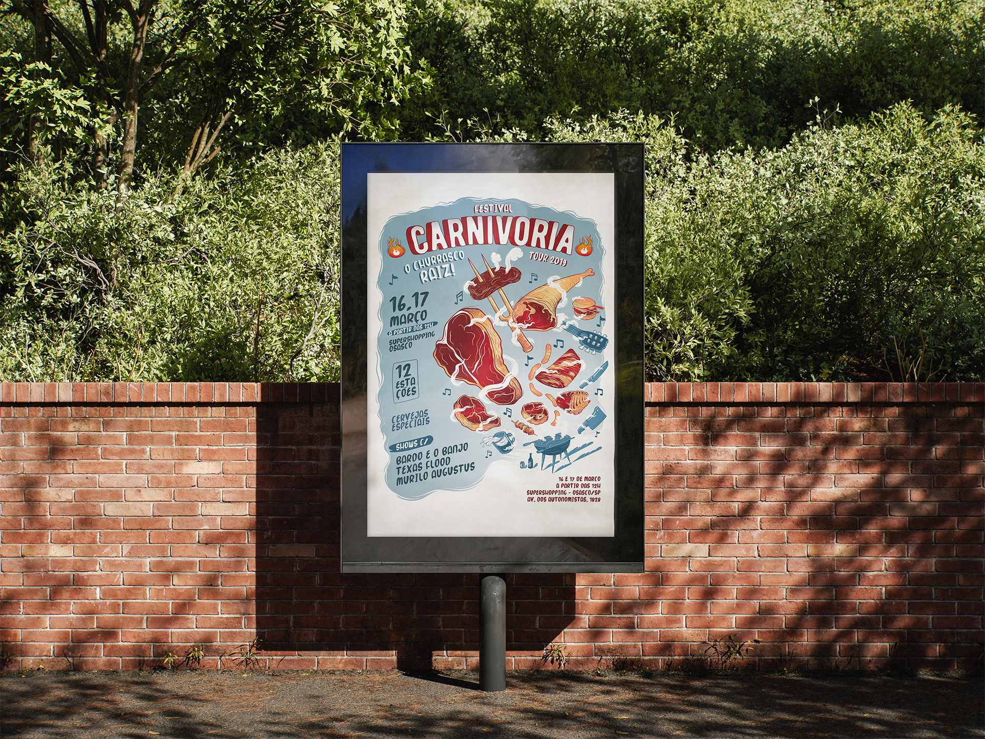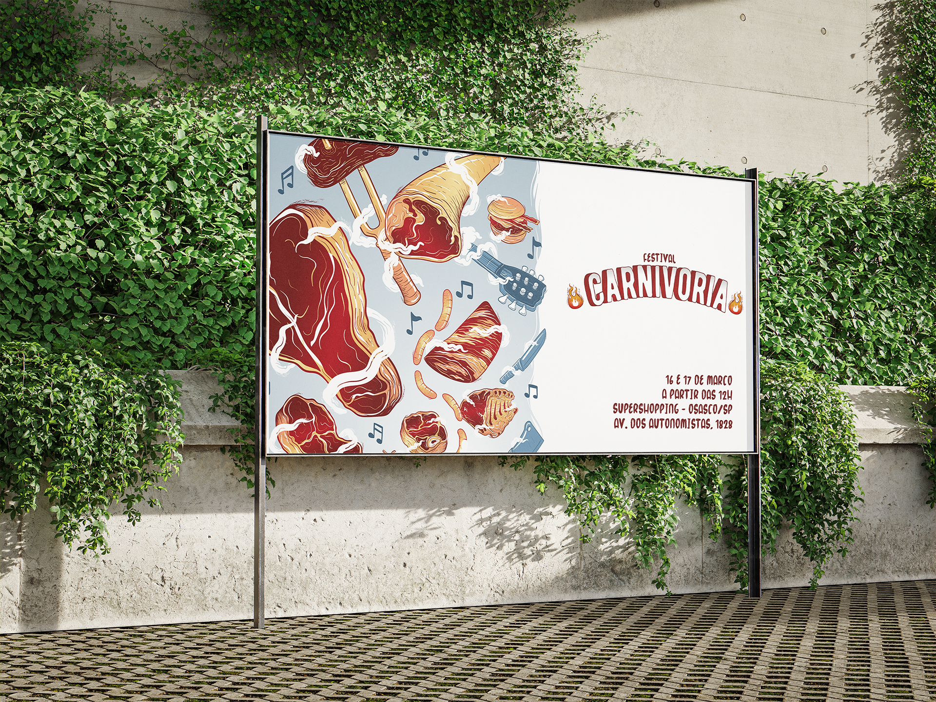 Trabalhando com vários elementos do universo da churrascaria, trouxe uma ilustração divertida e com movimento para chamar atenção pela alegria e energia do festival.